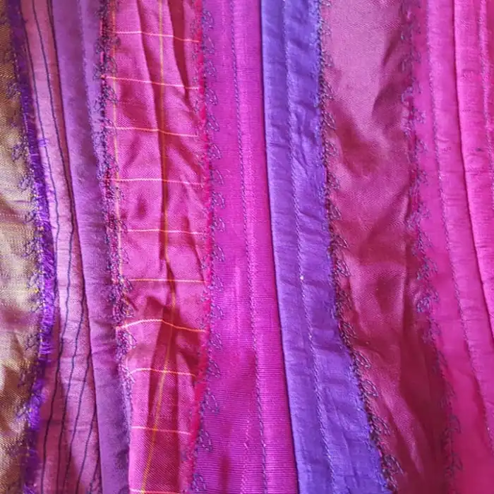 A simple and fun course making a silk cushion. The twist is that it is made of thin strips of real silk fabric made from saris. I have a huge basket, so you can choose your own design - a single colour or go wild, it's up to you. You'll cut lengths of your silk and applique them onto a piece of lining fabric with a fancy stitch. We'll then all pop downstairs to the Brixham Sewing Box, just a few doors down the high street, and pick out a fat quarter of your choice to be the backside of your cushion (whilst showing off the front to anyone who happens to be passing!) You'll finish off the cushion case, then pop a cushion inner inside, ending up with a beautiful, elegant and very professional looking cushion. Experience Level Beginner – You have some very basic sewing skills, and have used a sewing machine before Materials You won't need to provide any materials for this course! I will provide (included in the course fee) - Sari silk strips - Cushion inner - Your choice of backing fabric (we'll pop down to the Brixham Sewing Box shop where you can choose your own fat quarter included in the price) - All threads, trial scraps etc